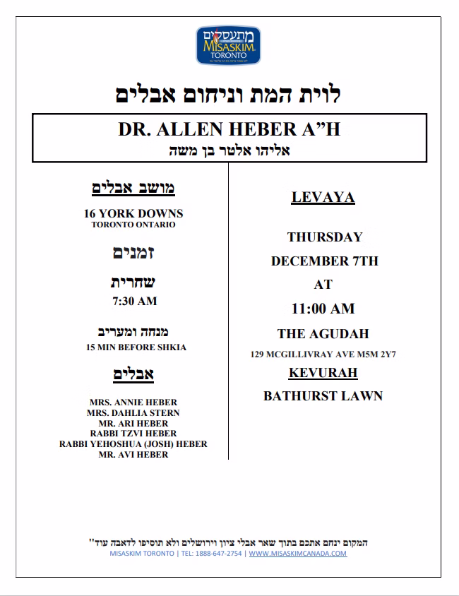 The Levaya will be livestreamed for those who are unable to attend – http://www.tiny.cc/GZL