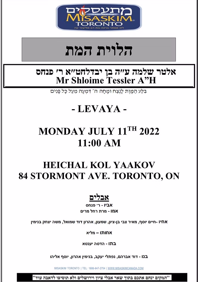Mr. Shloime Tessler (UPDATED WITH SHIVA INFORMATION) A”H