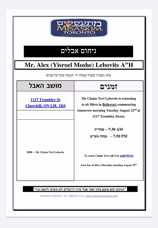 R’ Alex (Yisroel Moshe )Lebovits A”H