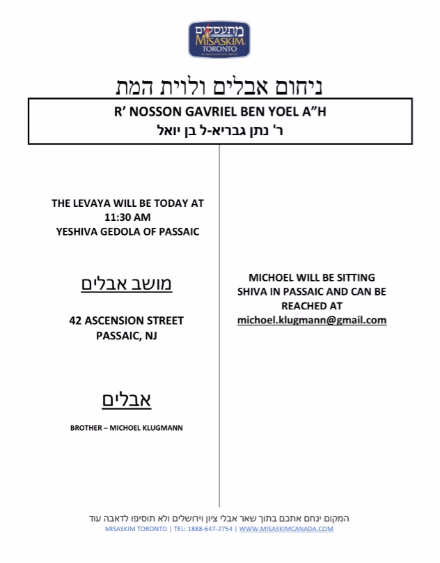 R’ Nosson Gavriel Klugmann A”H Shiva